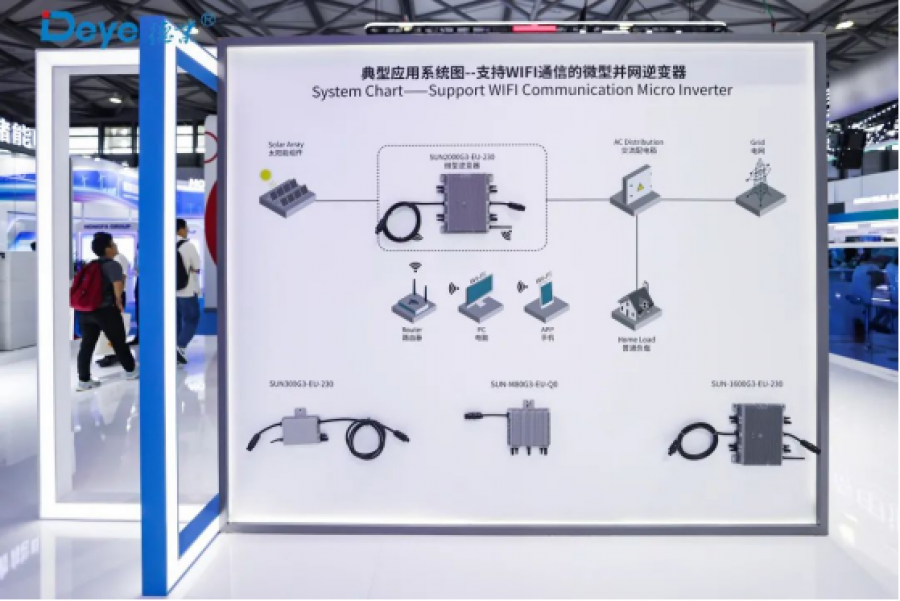 德业基于Wi-Fi通信的微逆系统方案也在现场受到了广泛的关注,德业早在2018年就已经推出了具备Wi-Fi直连功能的微型逆变器,无需专用数据采集器的设计可以有效降低微逆系统的初装成本,对于小型光伏系统的应用优势明显。